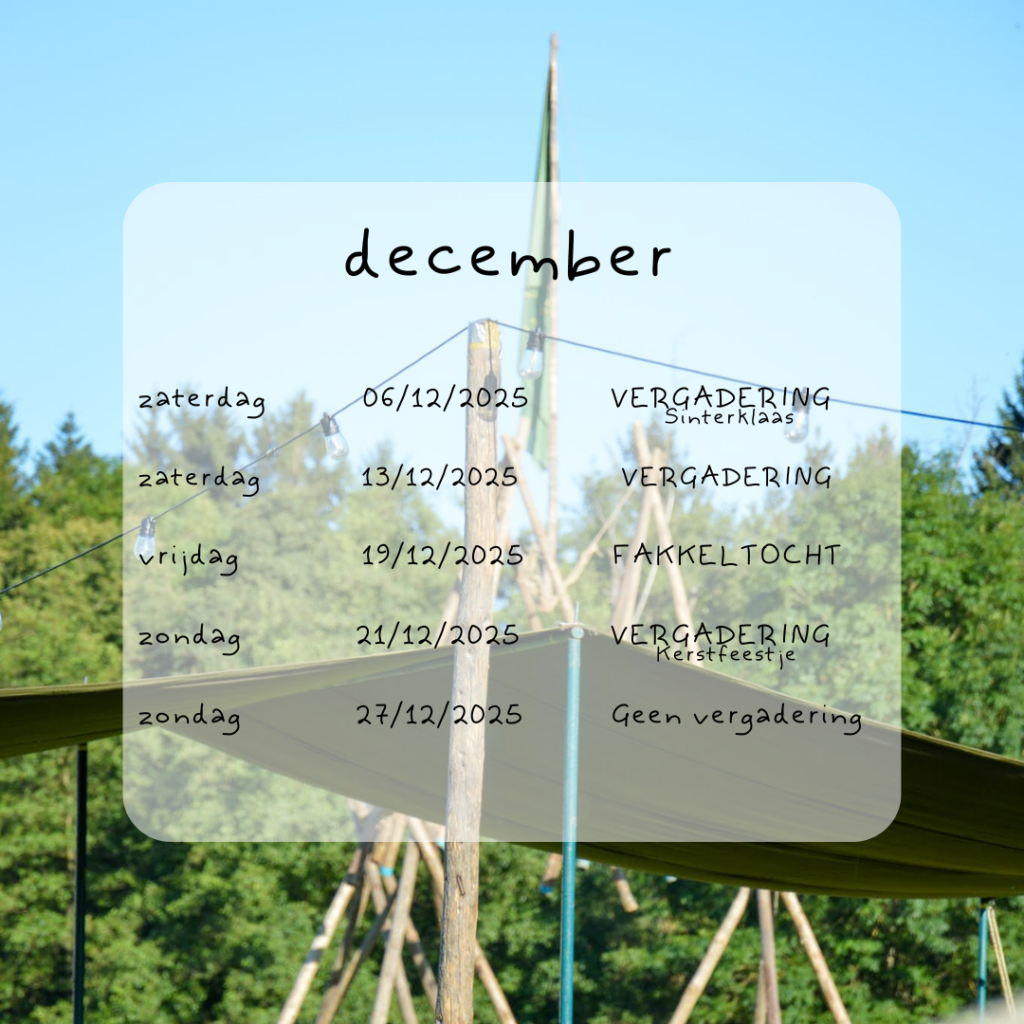 - Zo 30/11/2025 van 14u – 17u: GEEN vergadering